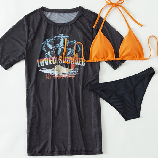 ADOGIRL LOVELY SUMMER Women's Bikini + Transparent T-Shirt